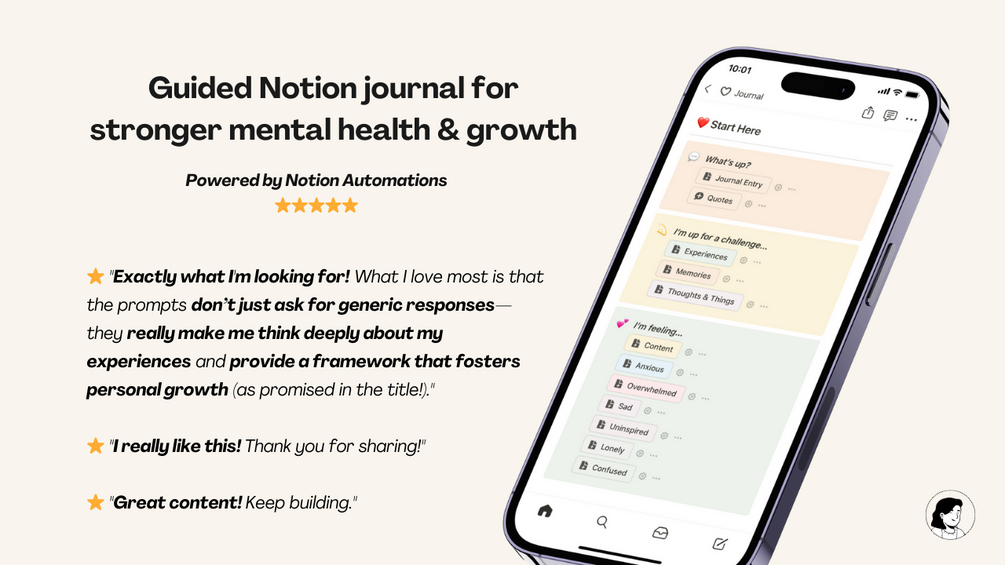 Ready to build a meaningful journaling habit? Get your copy of this Notion journal for mental health & growth now and start growing in new ways. Happy journaling 💛